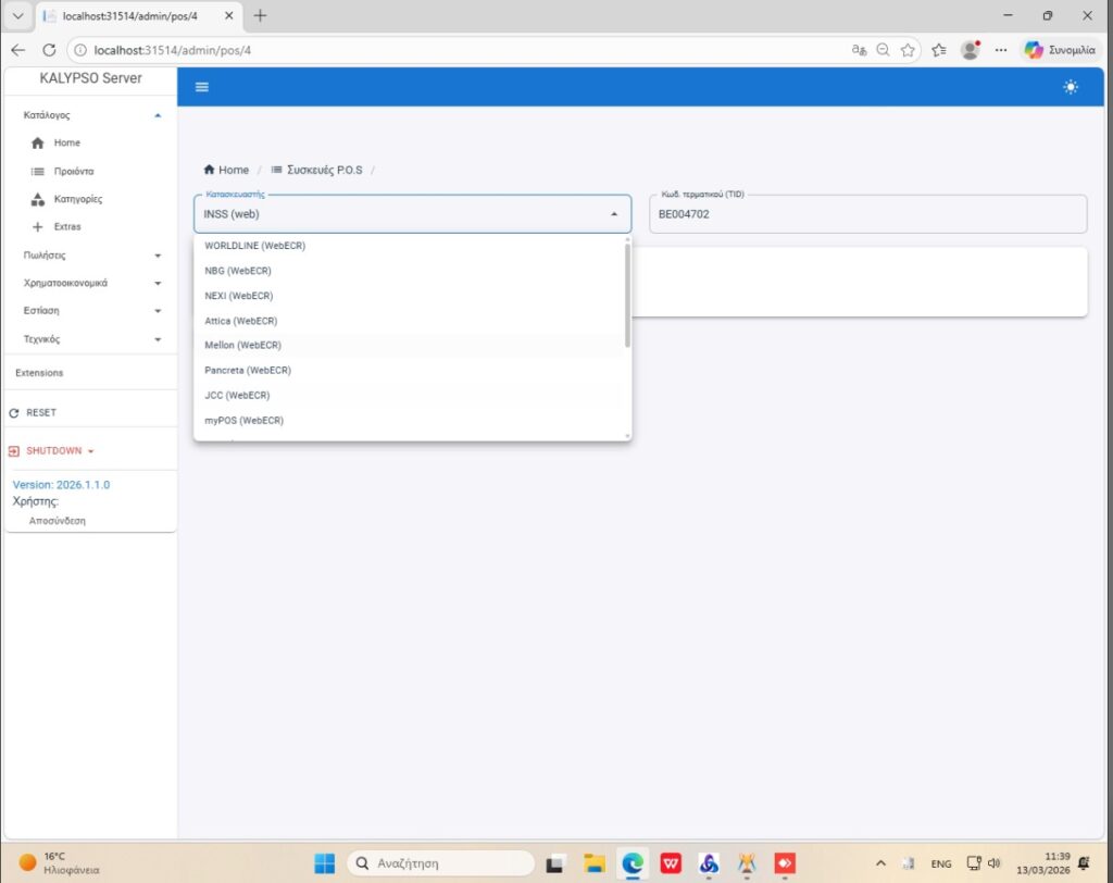 Με το πρόγραμμα Calypso η διασύνδεση γίνεται από την επιλογή συσκευές POS οπως εμφανίζεται και στις δύο παρακάτω εικόνες